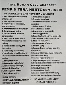 Who would think we need a cell charger, of course we do. Our bodies if not properly nourished will run low on energy. If we don’t get enough sleep, and so many other factors all make a difference with our health. But here’s the big one, we live in a VERY TOXIC world and there are so many interferences that deplete cellular voltage. So who really needs this type of therapy? Everybody needs to have extra charging on a daily basis. If you wish to try before you buy, then lets sample this amazing device at Genesis Total Care Ultra. Thirty-six health benefits listed, that apply to you or someone you know.